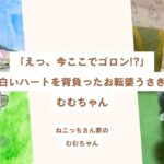 白いハートを肩に背負って、今日もどこかで、突然ゴロン。自由に生きるむむちゃんなのでした。