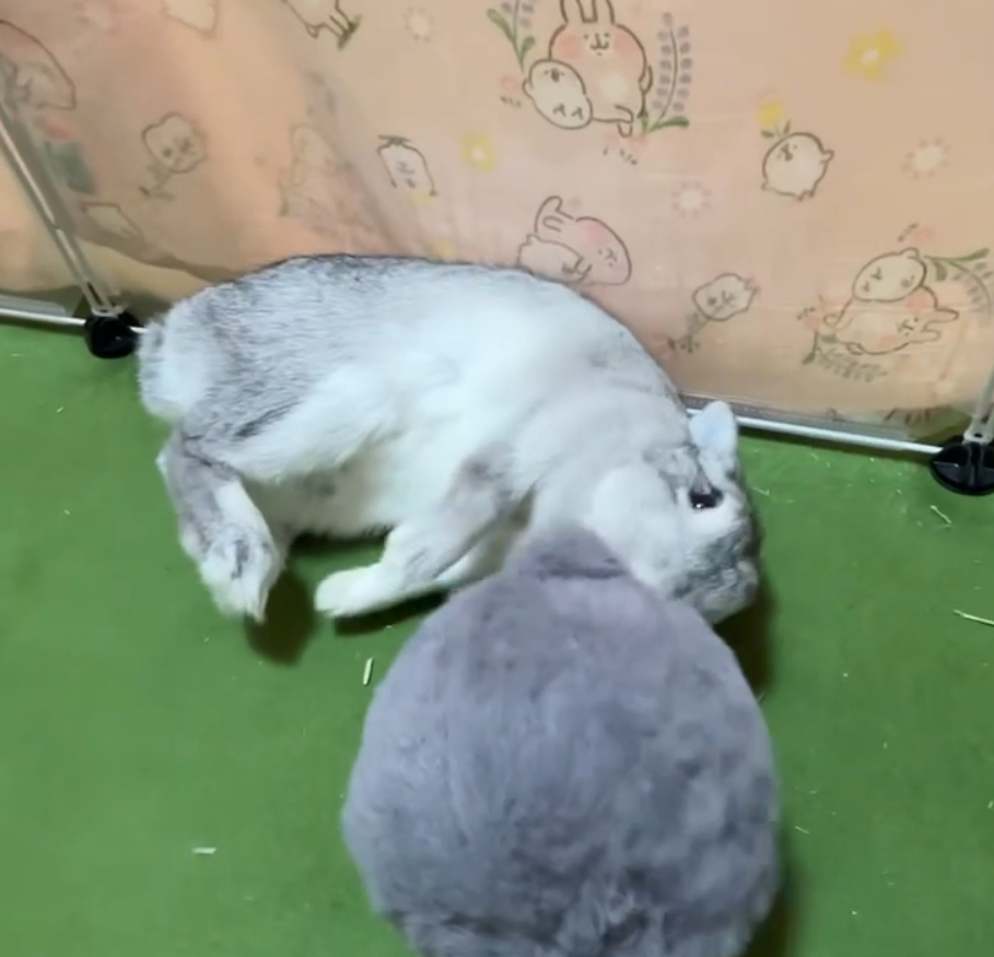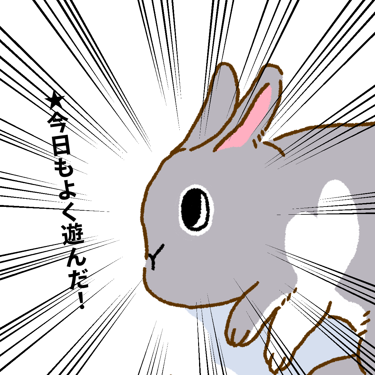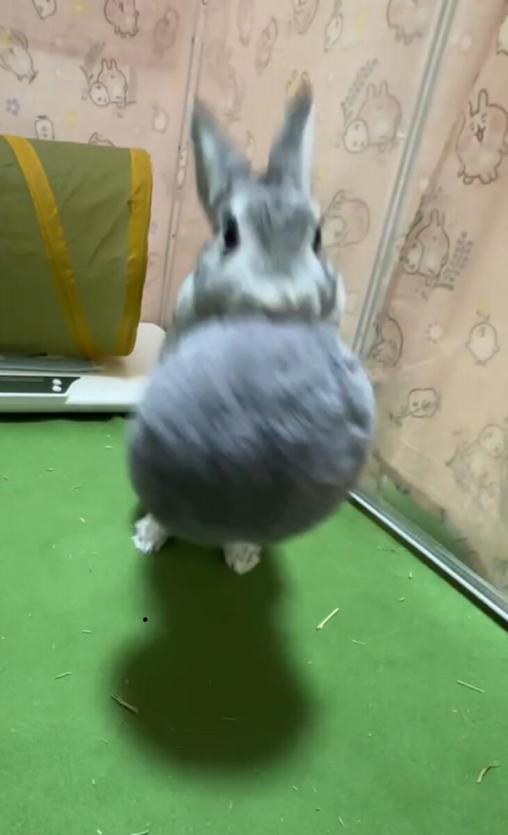 「えっ、今ここでゴロン!?」白いハートを背負ったお転婆うさぎ、むむちゃん