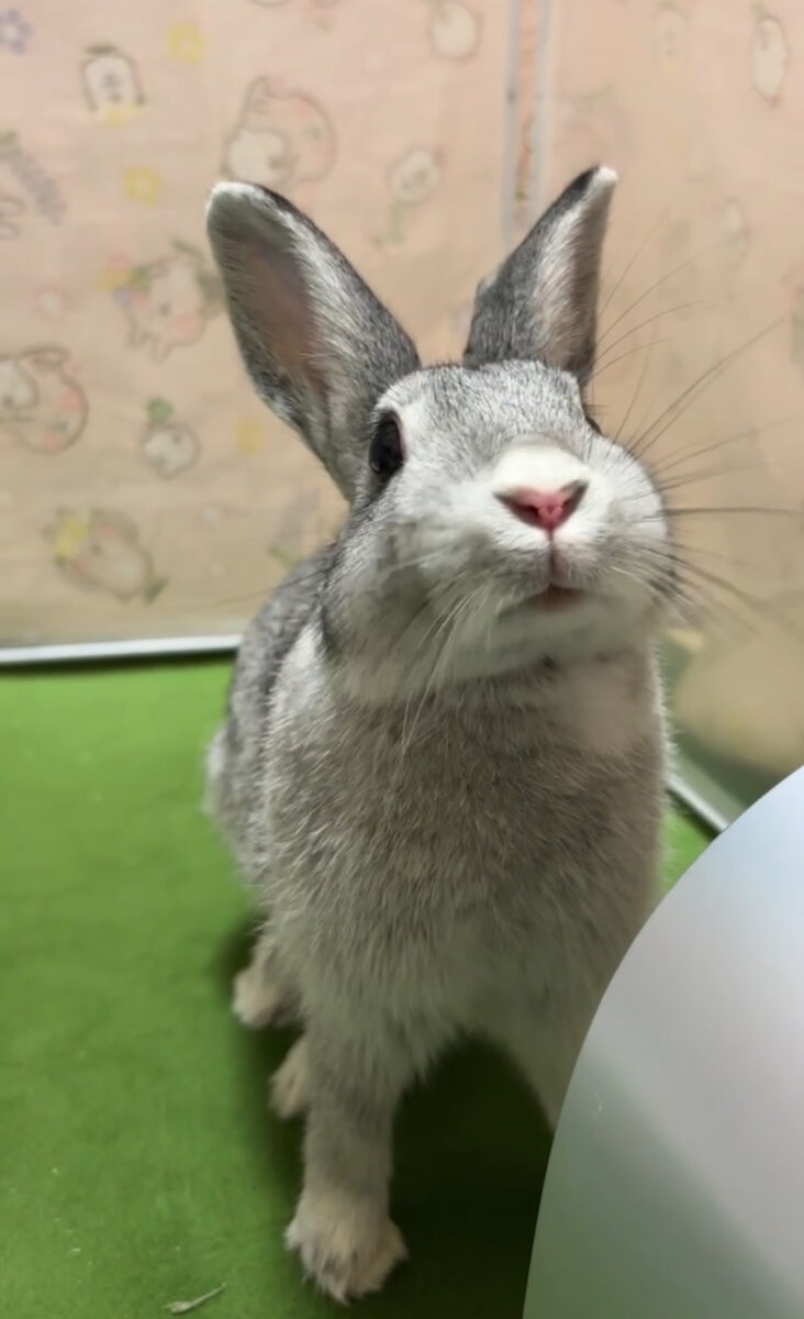 名前の由来は、先代うさぎさんの「momo」ちゃん。同じ“ま行”、同じ文字を繰り返す名前にしたくて、「むむ」になったそうです。