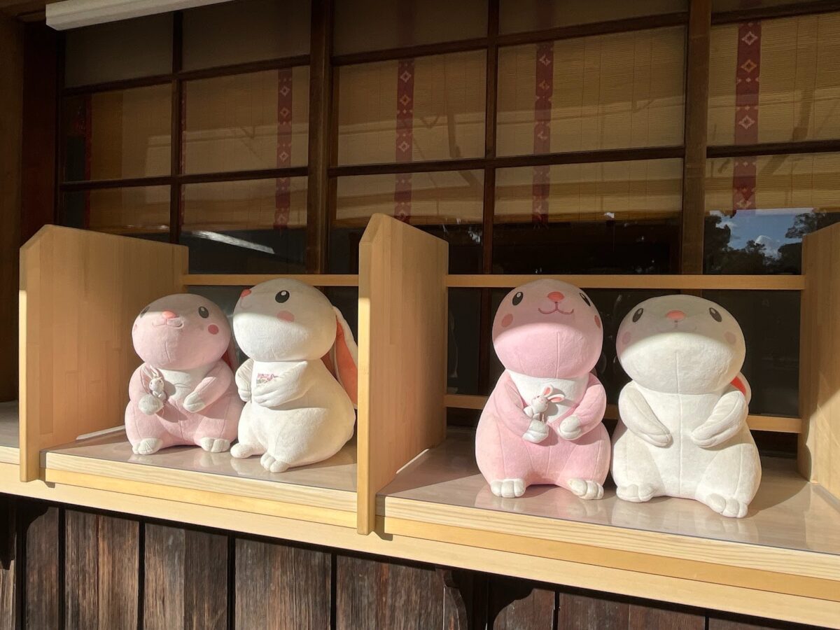他にも境内には住っこうさぎという、うさぎさんのぬいぐるみも並んでいます。訪れたときは2組の住っこうさぎさんが並んでいました。行くたびに場所が変わっているので、見つける楽しみもありますね。