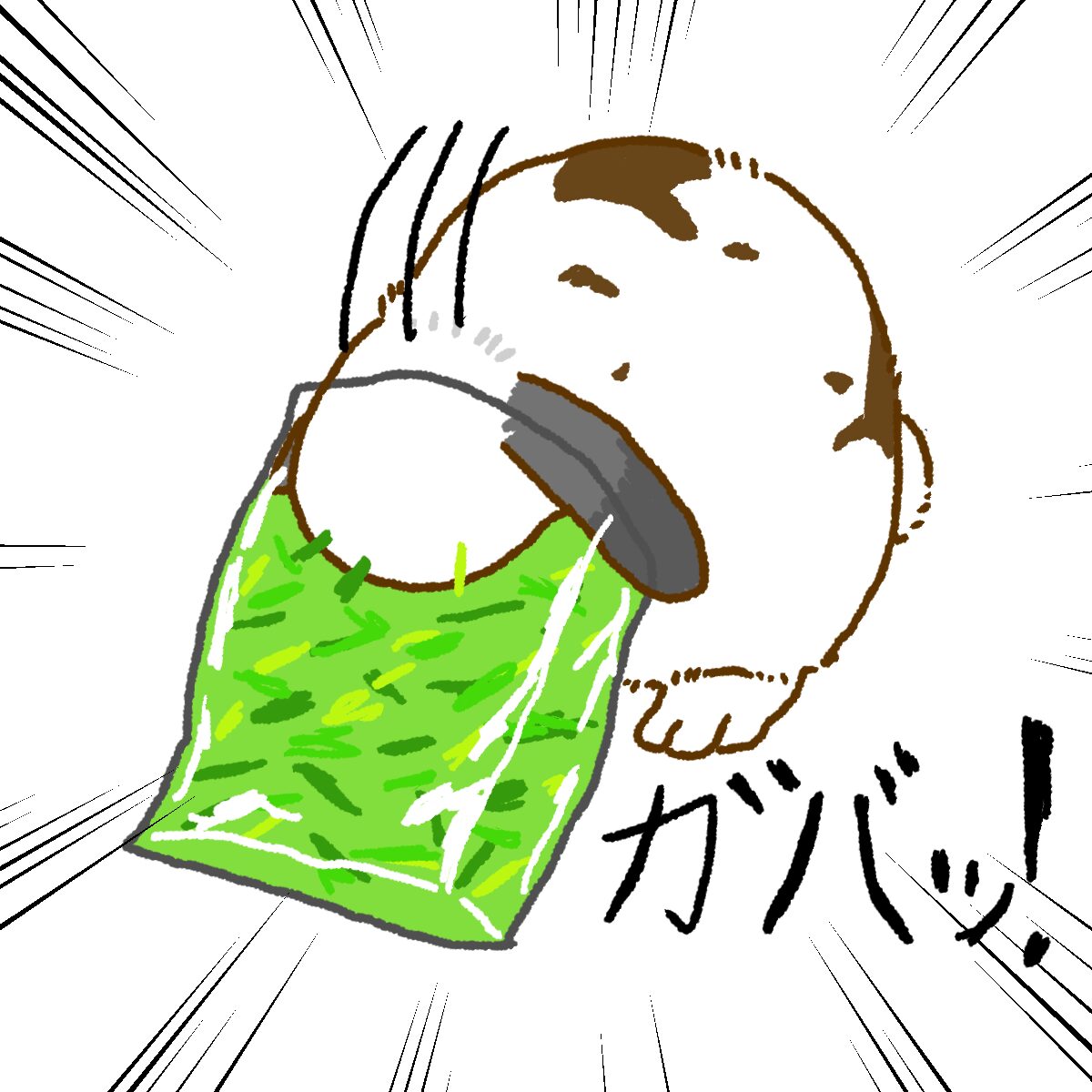 実はゆずちゃん、かなりの牧草好き。袋を見つけると、ためらいなく頭を突っ込んでムシャムシャ。