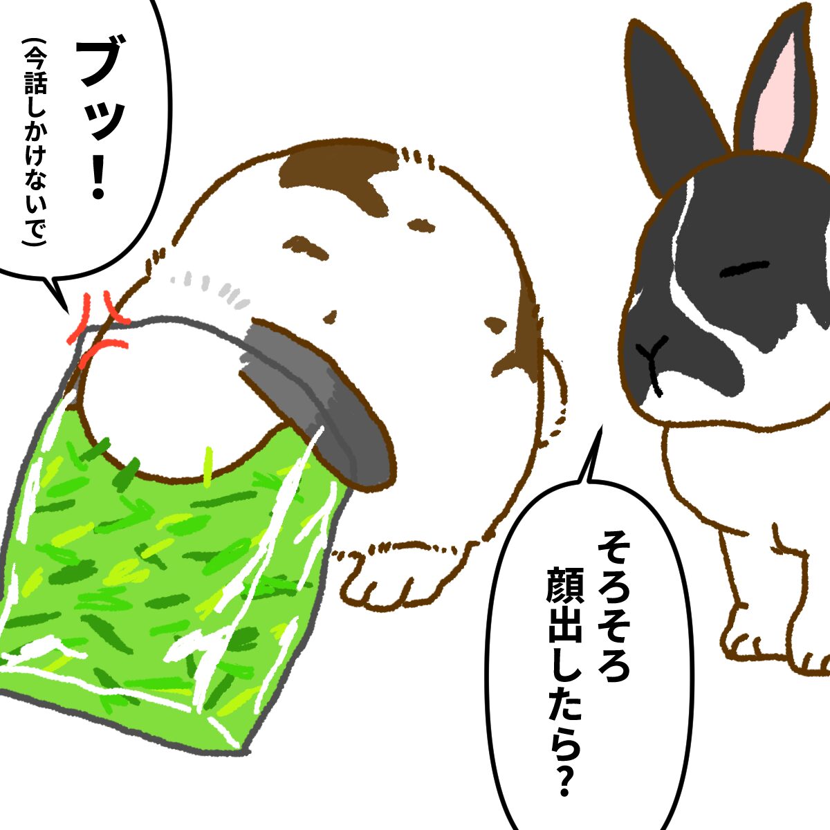 好きなことは、ケージの中で牧草を豪快に広げ、その上でゴロンとくつろぐこと。そしてもうひとつ、大事なお仕事もあります。